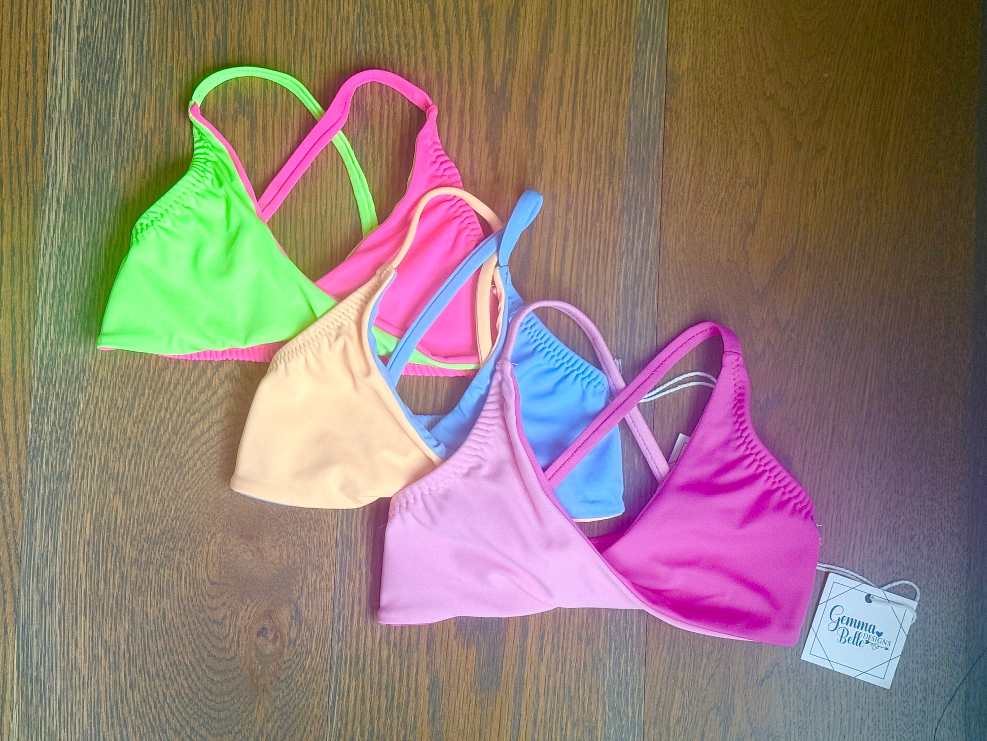 Bra top that crosses center front. Lined front and back.